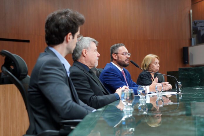 Além de Cruvinel, no comando dos trabalhos, tiveram assento à mesa: presidente do Sindicato dos Servidores do TCE, Marcos Pinto Perillo; secretário-executivo da presidência da corte e auditor Sérvio Tulio Teixeira; e ex-vereadora por Goiânia e ex-servidora do TCE Jacira Alves.