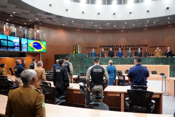 Em solenidade na noite dessa quinta-feira, 23, o Parlamento goiano celebrou a atuação de policiais e agentes que prestam serviço nos diversos municípios de Goiás. Proposta pelo deputado Lucas do Vale (PSD), a sessão foi marcada pela entrega de honrarias pela Assembleia Legislativa de Goiás (Alego) a integrantes das forças de segurança.