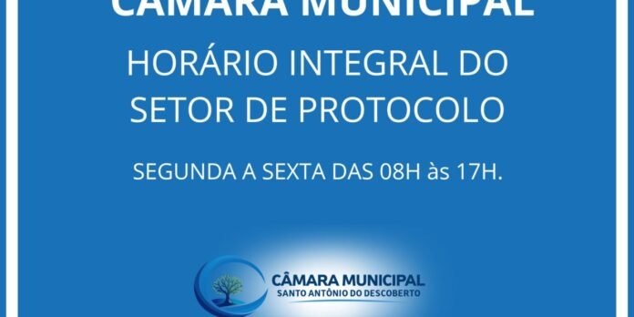 A Câmara Municipal informa, que passou a funcionar em horário integral o setor de protocolo.