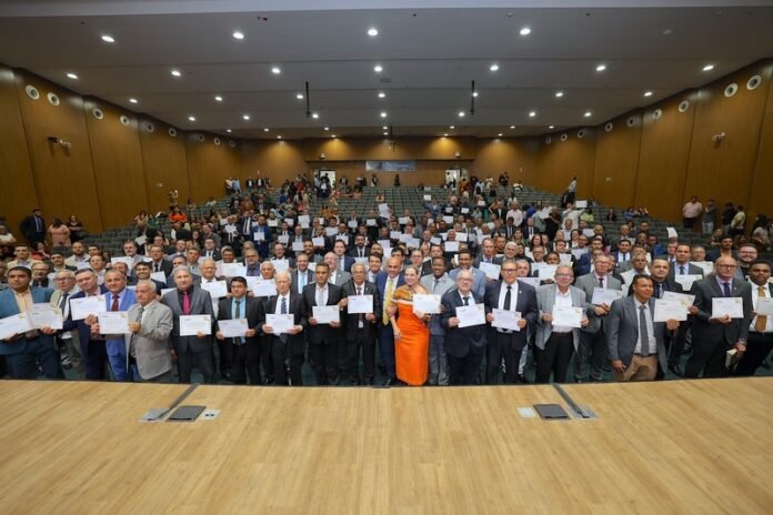 Por iniciativa do presidente da Assembleia Legislativa de Goiás (Alego), Bruno Peixoto (UB), e do deputado Paulo Cezar Martins (PL), o Parlamento goiano realizou sessão solene para entrega do Certificado Pastor Alvino Pereira Rocha, na noite dessa quinta-feira, 2. Essa foi a primeira entrega da honraria, instituída pelo Legislativo goiano em agosto.