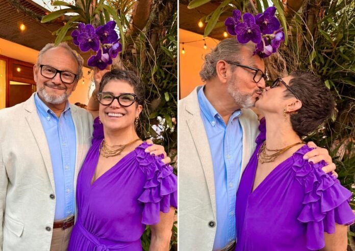 Apresentadora do “Globo Repórter”, Sandra Annemberg, de 57 anos, postou uma foto romântica com o marido, o jornalista da TV Globo, Ernesto Paglia, de 67. O registro foi feito no fim de semana, durante um casamento de uma amiga do casal.