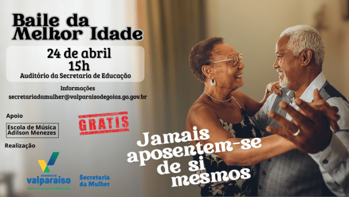 A Prefeitura Municipal de Valparaíso, por meio da Secretaria da Mulher, convida toda a comunidade para prestigiar o Baile da Melhor Idade, que acontecerá no dia 24 de abril, às 15h, no Auditório da Secretaria de Educação. O evento é voltado ao público da terceira idade e busca promover bem-estar, socialização e diversão.