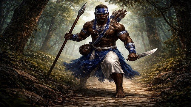 Ògún, o grande senhor do ferro e da tecnologia ancestral, se manifesta como Ọlọ́ọdẹ na ligação direta com a caça, a sobrevivência e a evolução humana. Foi ele quem proporcionou aos caçadores ferramentas mais eficazes, substituindo a fragilidade da madeira pela força do ferro. Com isso, a humanidade deu um salto em organização, proteção e sustento.