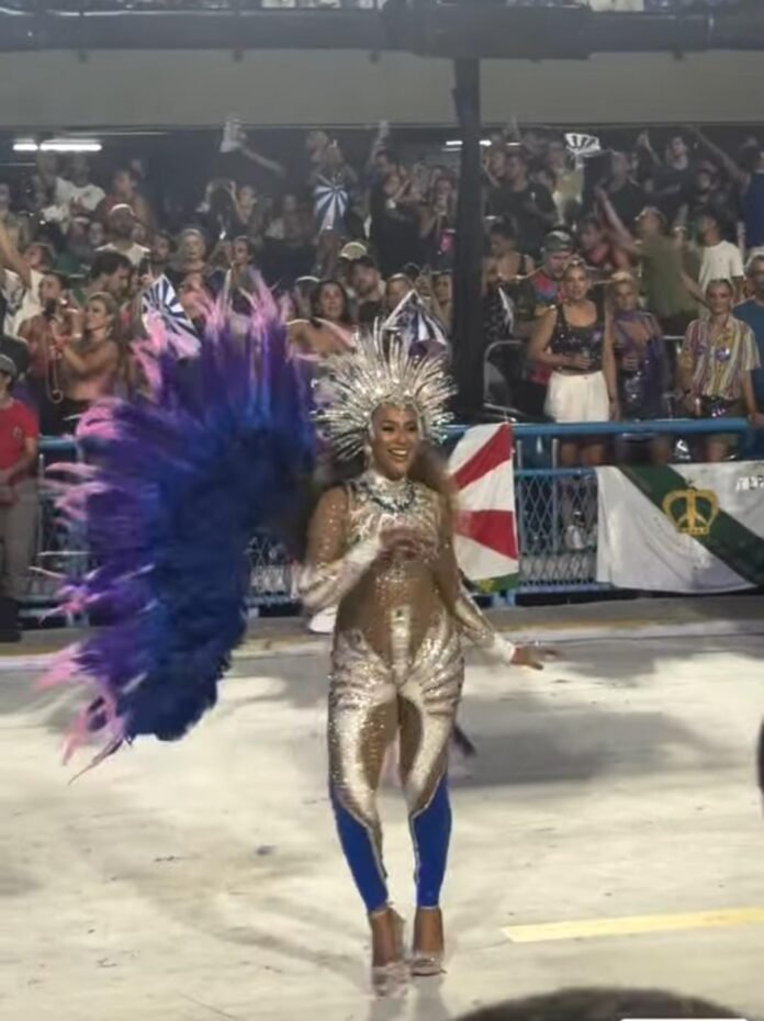 Consta no documento entregue pela escola à Liesa, o Abre-Alas, que a atriz veste o figurino Pele Oculta, que revela “a contradição fundadora da história gaúcha, uma terra que se construiu negra, mas aprendeu a se imaginar branca”.