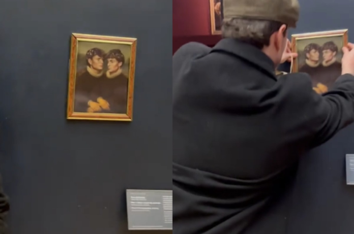 Neal e Senne, dois TikTokers com 49 mil seguidores e conhecidos por suas pegadinhas nas redes sociais, conseguiram pendurar um retrato no Museu do Louvre na última sexta-feira (14), sem serem pegos pela segurança do museu. A “obra” foi colocada próxima à Mona Lisa, na Sala dos Estados, no primeiro andar do Louvre, em Paris. Veja abaixo: