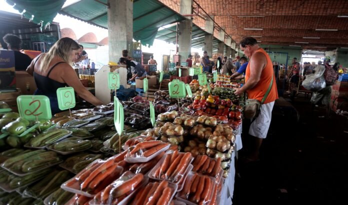 O feirante Victor Vinícius, de 27 anos, já sente o peso do frete nas suas contas. Ele diz que está pagando R$98 em uma caixa de maçã que antes era R$80, enquanto no mercado o kg está quase R$20. A fruta registrou queda no IPCA, mas, nas bancas, o preço continua subindo.