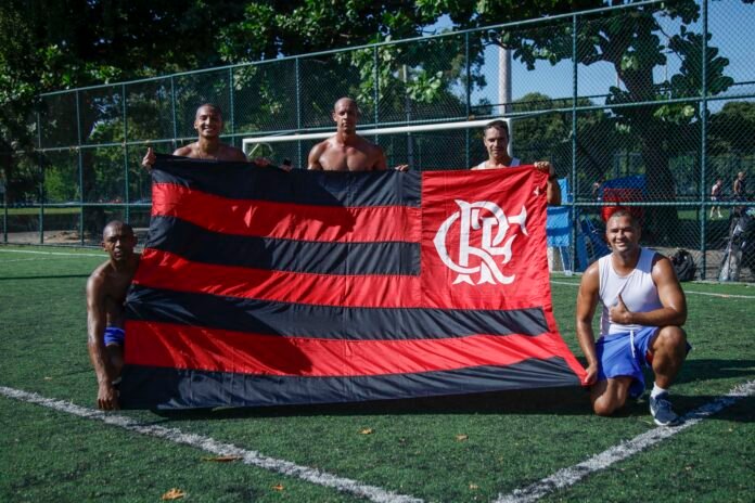 Sidney da Silva Rosa (42), Kaio César (37), Everton Rocha (41), Murilo Lucas (30) e Felipe Nunes (34) são rubro-negros da Marinha e jogavam futebol no Aterro do Flamengo na terça (14) pela manhã
