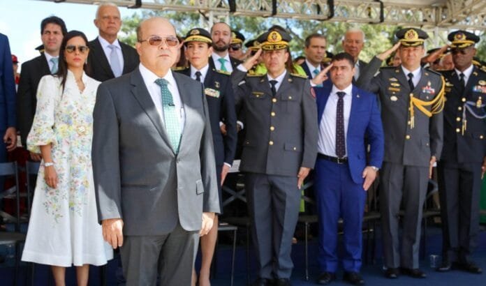 Para Ibaneis Rocha, a troca da Bandeira Nacional neste domingo foi momento de “celebrar nosso amor à pátria e nosso amor por Brasília” | Fotos: Paulo H. Carvalho/Agência Brasília