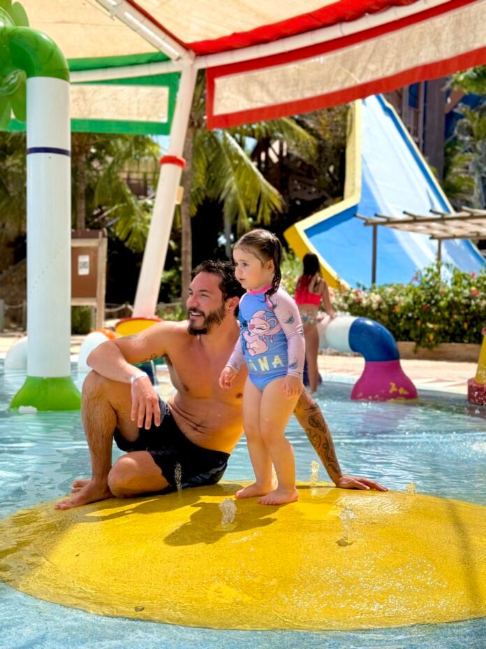O roteiro incluiu hospedagem no Acqua Beach Park Resort e visita ao Aqua Park. No resort, a família curtiu a piscina e as atividades recreativas que integram a programação. O ponto alto da viagem foram os dias no parque aquático. Enquanto os filhos, Lua e Ravi, se divertiram em atrações infantis como o Acqua Show, o Acqua Circo e o Aquabismo, o casal se manteve ao lado deles, aproveitando as atrações mais tranquilas ao lado das crianças.