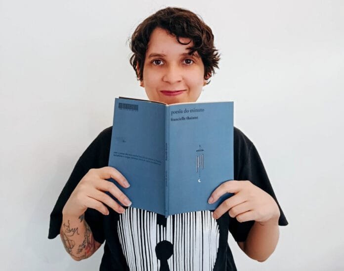 Francielle Thaiane, figura marcante da cena cultural underground, iniciou sua trajetória literária em 2014 e desde então vem se destacando com produções independentes que transitam entre zines, áudio-zines e publicações premiadas. Seu fascínio pela contracultura e literatura marginal reflete um estilo visceral e autêntico, consolidado agora em sua nova obra, que convida o leitor a enxergar os minutos como poesia.