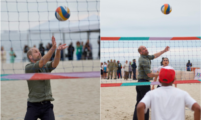 William joga vôlei, tira tênis e faz selfies em Copacabana; menina o presenteia com pulseira para Kate